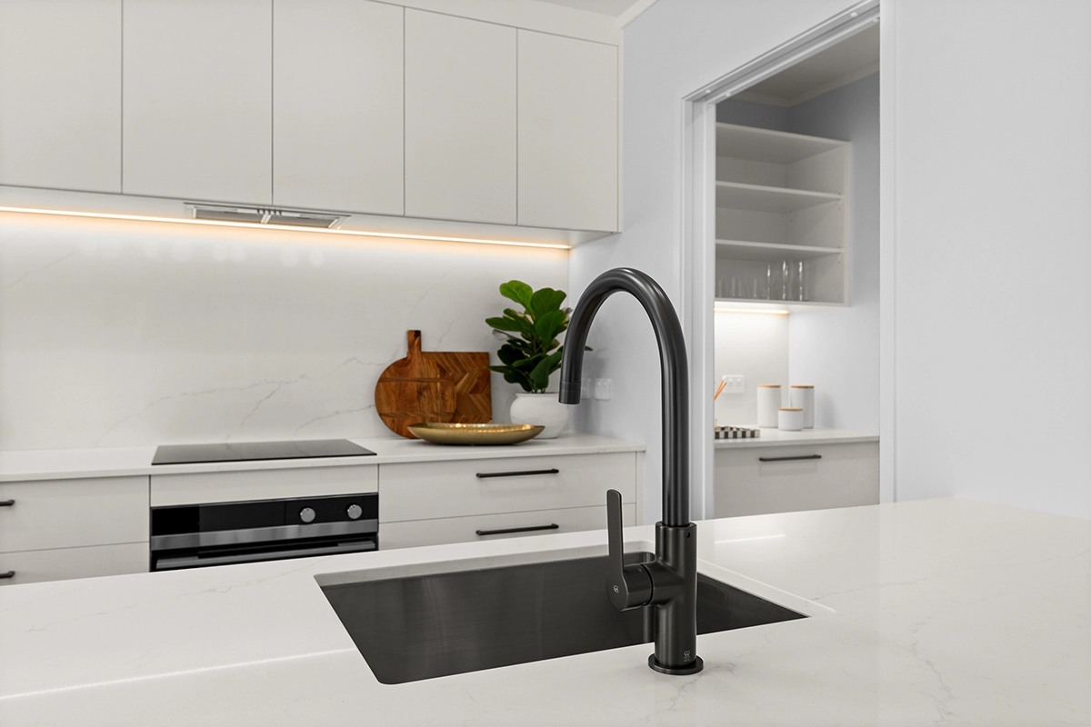 All our kitchens are custom-made to fit your preferences, ensuring a personalized touch. They boast contemporary designs paired with functionality. Equipped with modern fixtures and plumbing fittings, our kitchens come fully wired and plumbed, ready for seamless connection to services on-site.